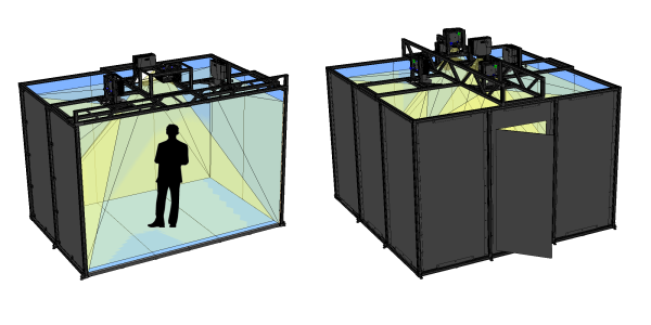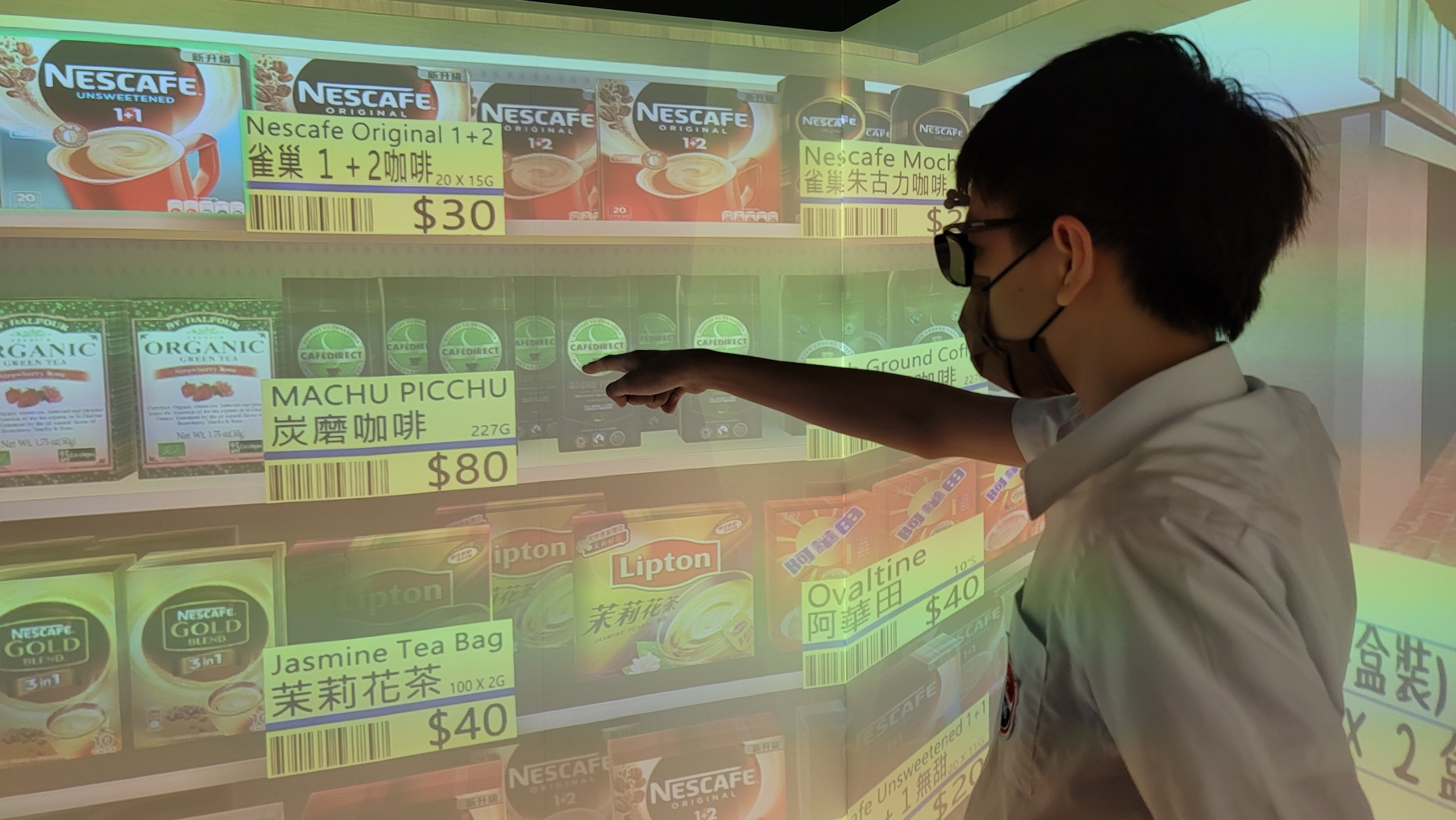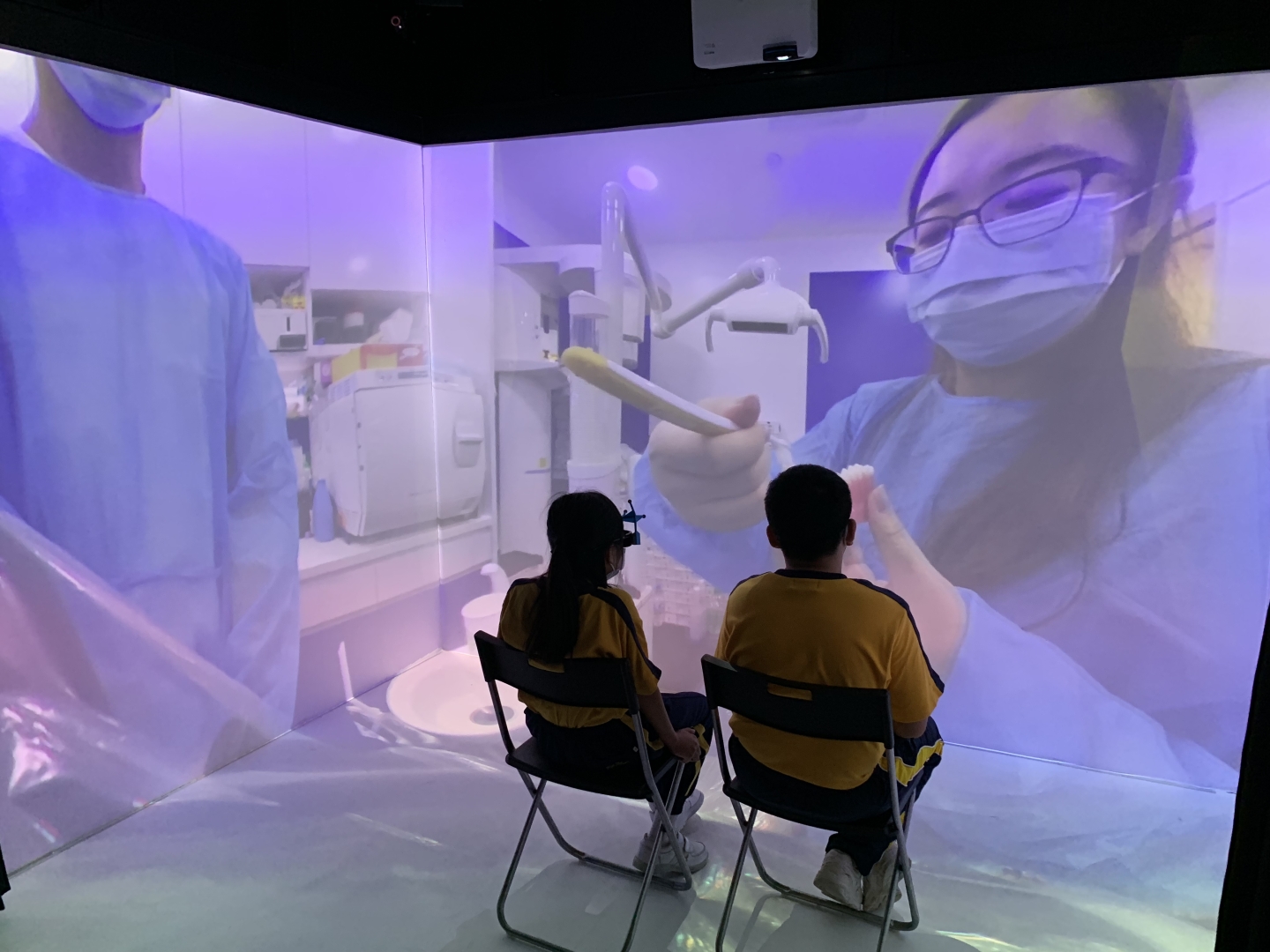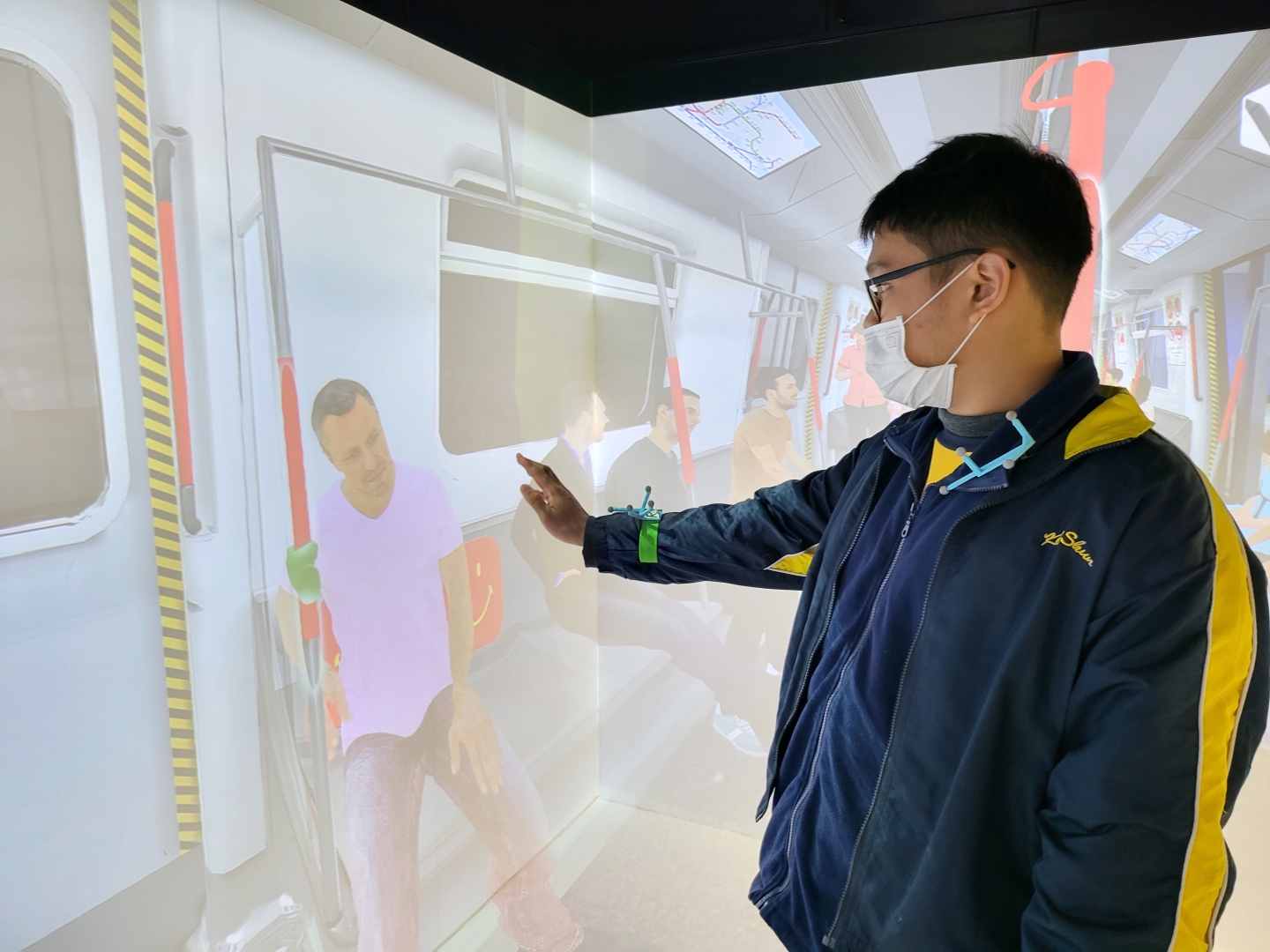 沉浸式虛擬實境系統所運用的三維空間投影技術,不但能讓學生眩暈不適感大大減少,更能提供使用者視覺及聽覺的類比,D讓學生在擬真的環境進行學習。此外,新系統亦能解決以往VR眼鏡笨重、互動性低的缺點,貼合智障學童的需要。 - 影系統
