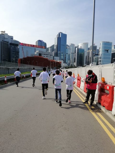 本校參加了香港賽馬會特殊馬拉松已經10個年頭了。還記得第一屆「香港特殊馬拉松」於香港中文大學夏鼎基運動場舉行,當年本校只有約10多人參與。於2014年特殊馬拉松首次在中環龍和道及添馬公園作賽,參與的學生人數越來越多,最多的一屆約有40多對組合參與。看著賽道上的學生和伴跑員一年比一年的成長,心裏深感欣慰。本年本校約有30多對組合,包括學生、家長及老師參與,所有學生均能努力完成3公里賽事,勁!!!以下當天的花絮: