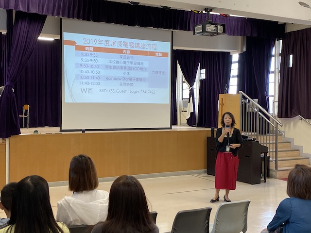 本校資訊科技及通訊組會定期舉辦家長電腦講座。本年度向家長介紹了本校推動資訊科技教育的發展,讓家長可以了本校學生在進行電子學習的情況。在講座中,家長更可試用電子書,學習運用電子書教導子女進行學習。本校亦關注資訊素養的重要性,家長也可了解子女上網、使用電子產品的注意事項。
