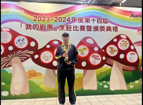 謝宇明同學於比賽中獲得亞軍,參賽菜式是「Juicy 菇 bi」